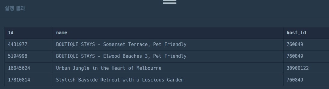 WHERE절이 아닌 HAVING절에 COUNT(HOST_ID) > 1