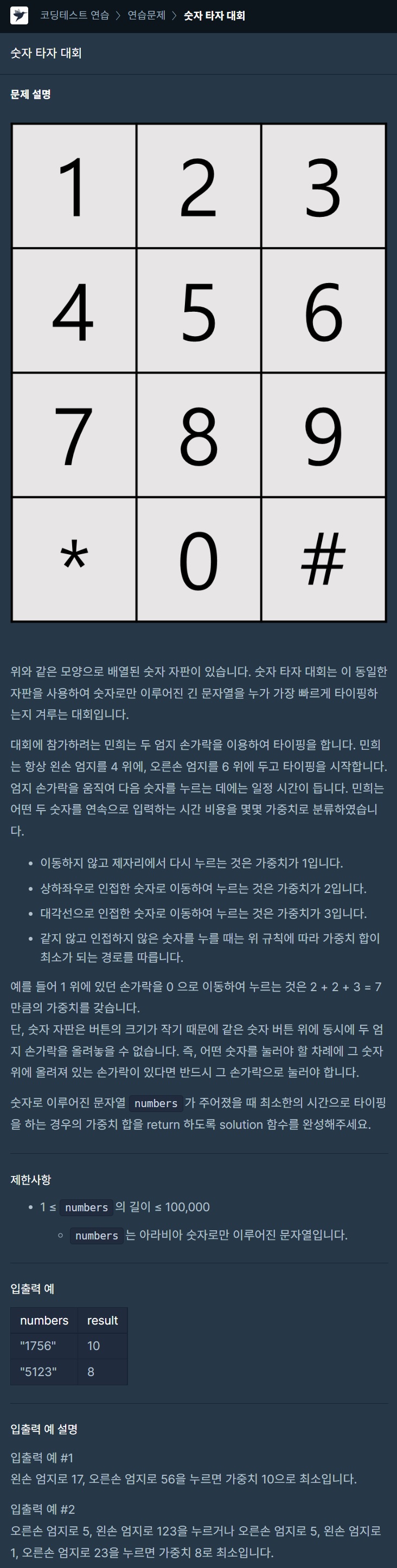 프로그래머스 숫자 타자 대회 문제 풀이 Java