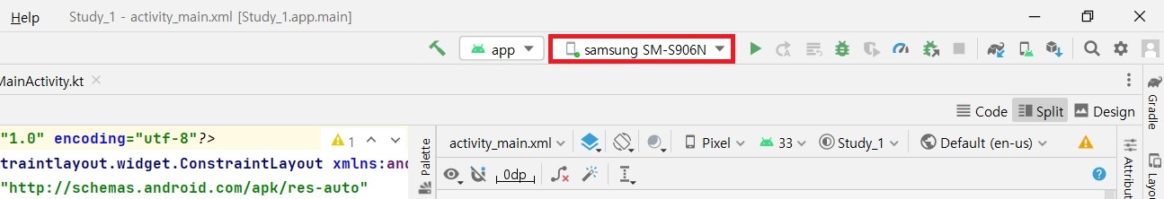 6. 실행 버튼 클릭 후 안드로이드 기기 확인