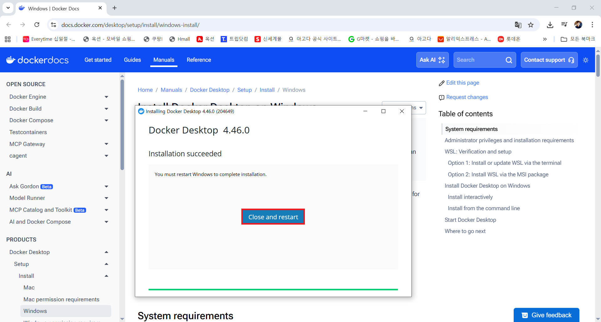 1) https://docs.docker.com/desktop/setup/install/windows-install/ 접속