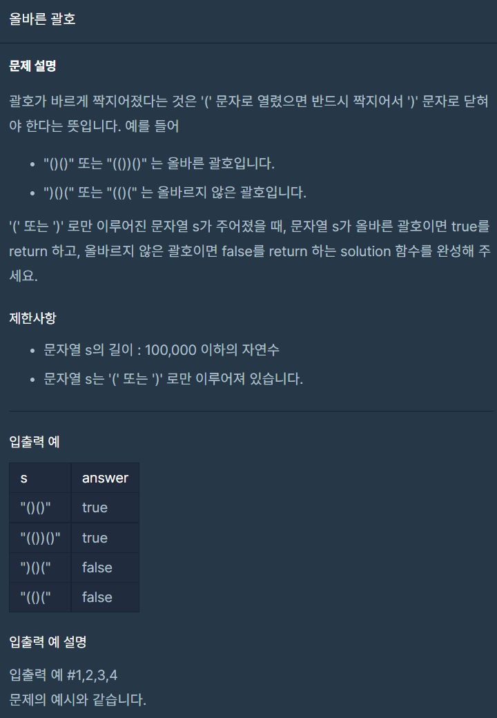 프로그래머스 올바른 괄호 문제 풀이 Java