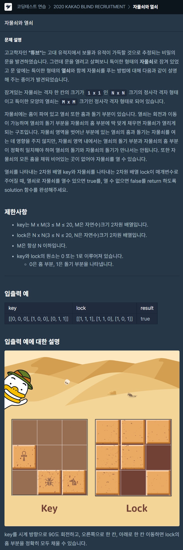// key, lock 3이상 20이하 크기의 2차원 배열