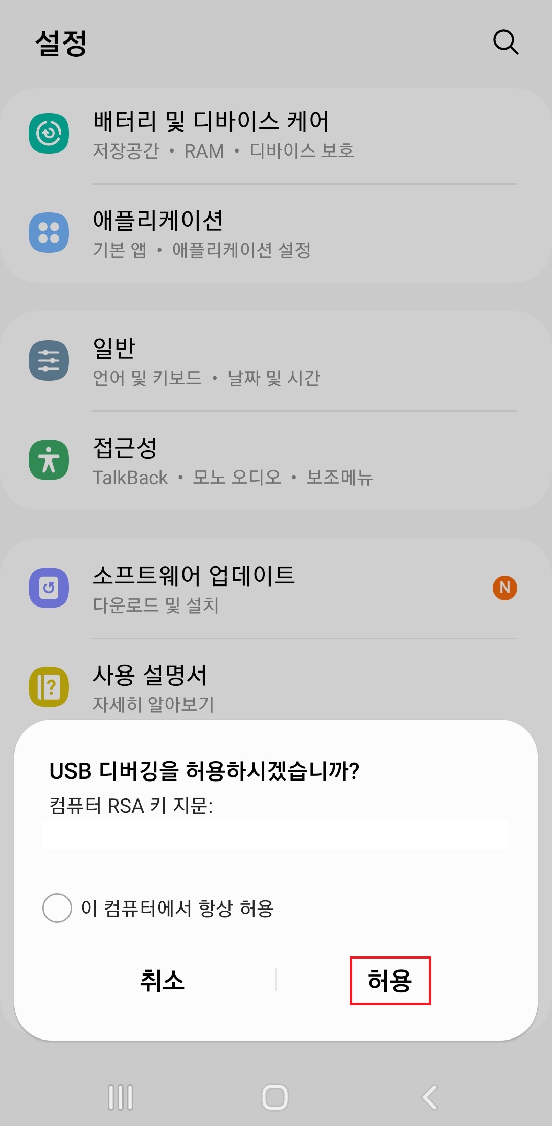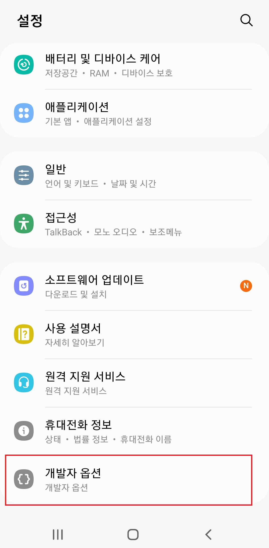 1. 설정 > 휴대전화 정보 > 소프트웨어 정보 > 빌드번호 여러 번 터치
