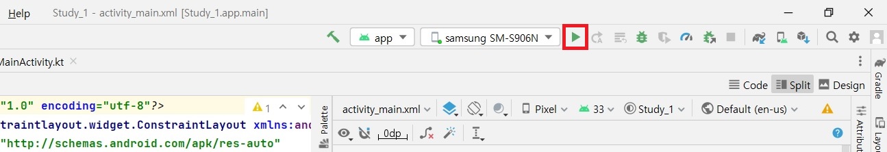 6. 실행 버튼 클릭 후 안드로이드 기기 확인