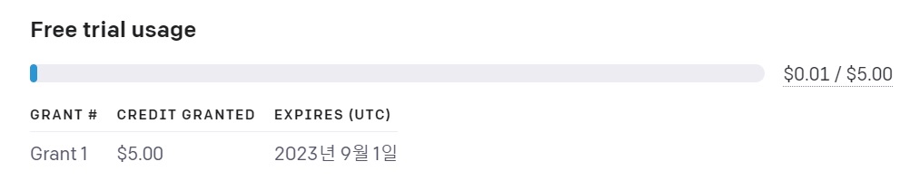 Free trial usage를 확인할 수 있다.