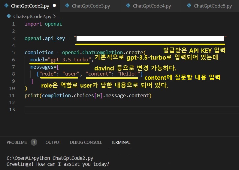 openai.api_key = "당신의 KEY"