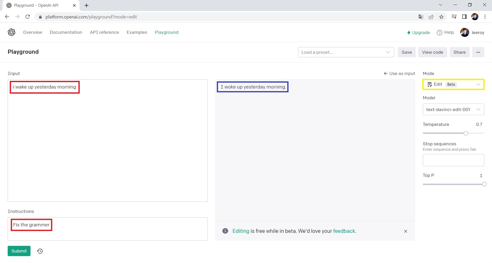 ChatGPT Playground를 활용하자