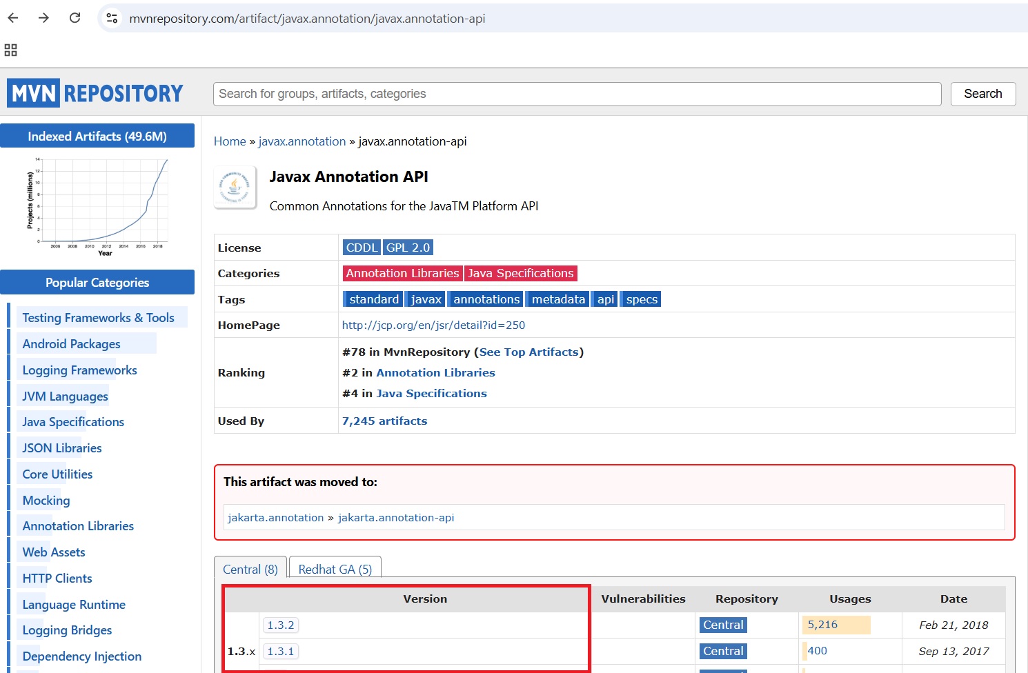 1. https://mvnrepository.com/artifact/javax.annotation/javax.annotation-api 접속 후 버전 선택