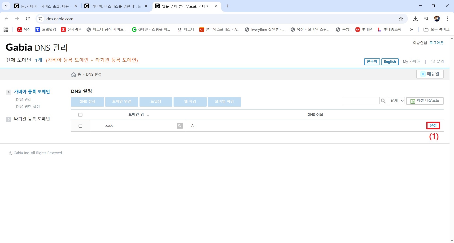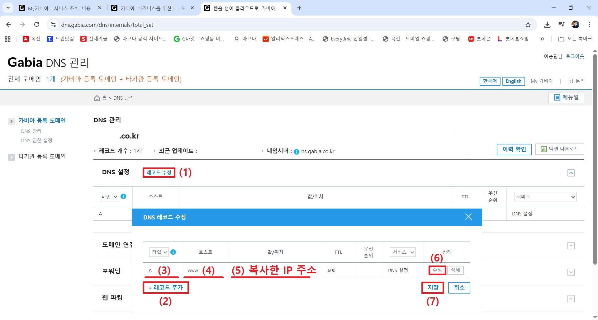 ※ Gabia 도메인으로 설명