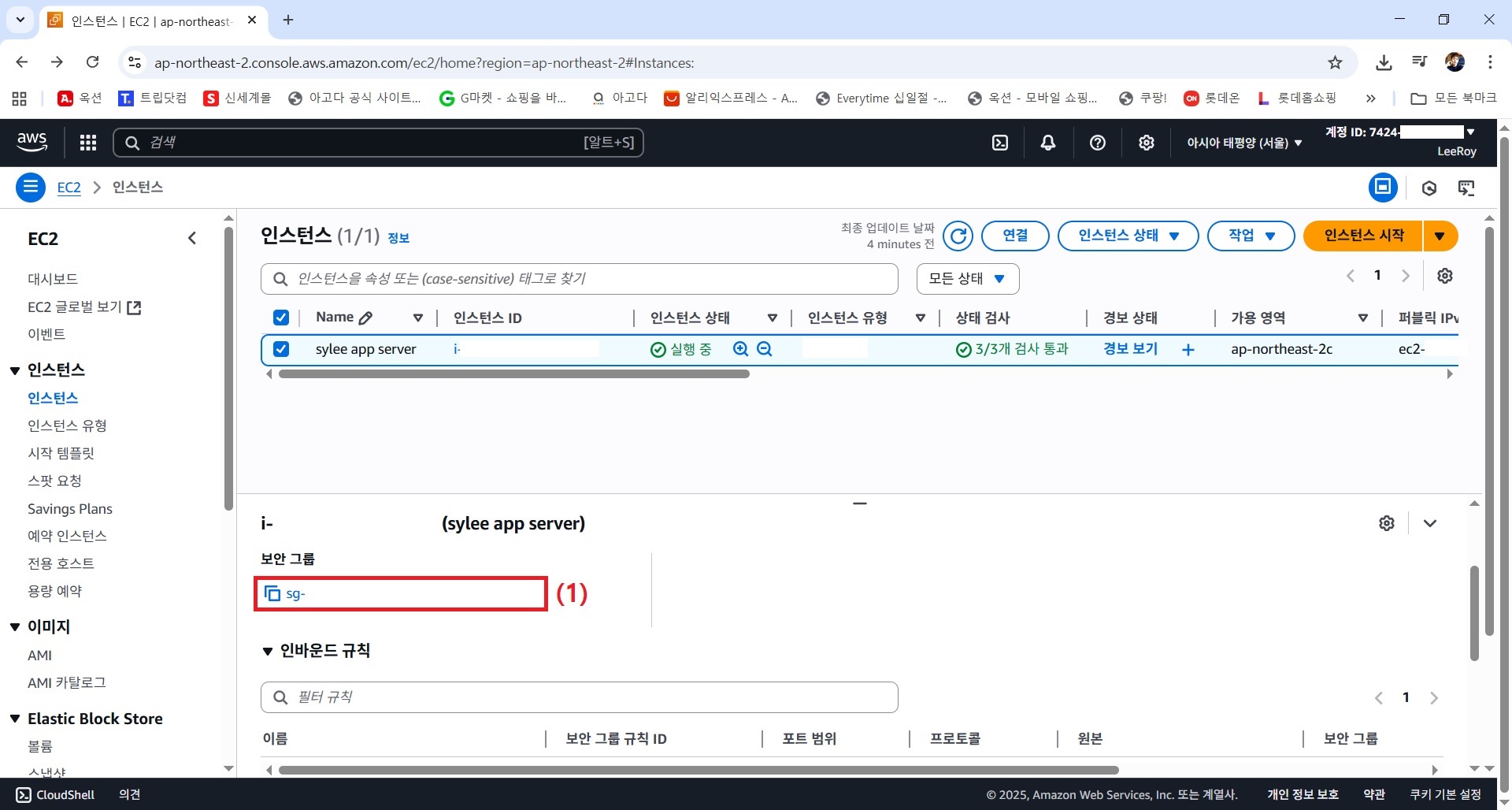 10) 인바운드 규칙 편집을 위해 보안 그룹 클릭