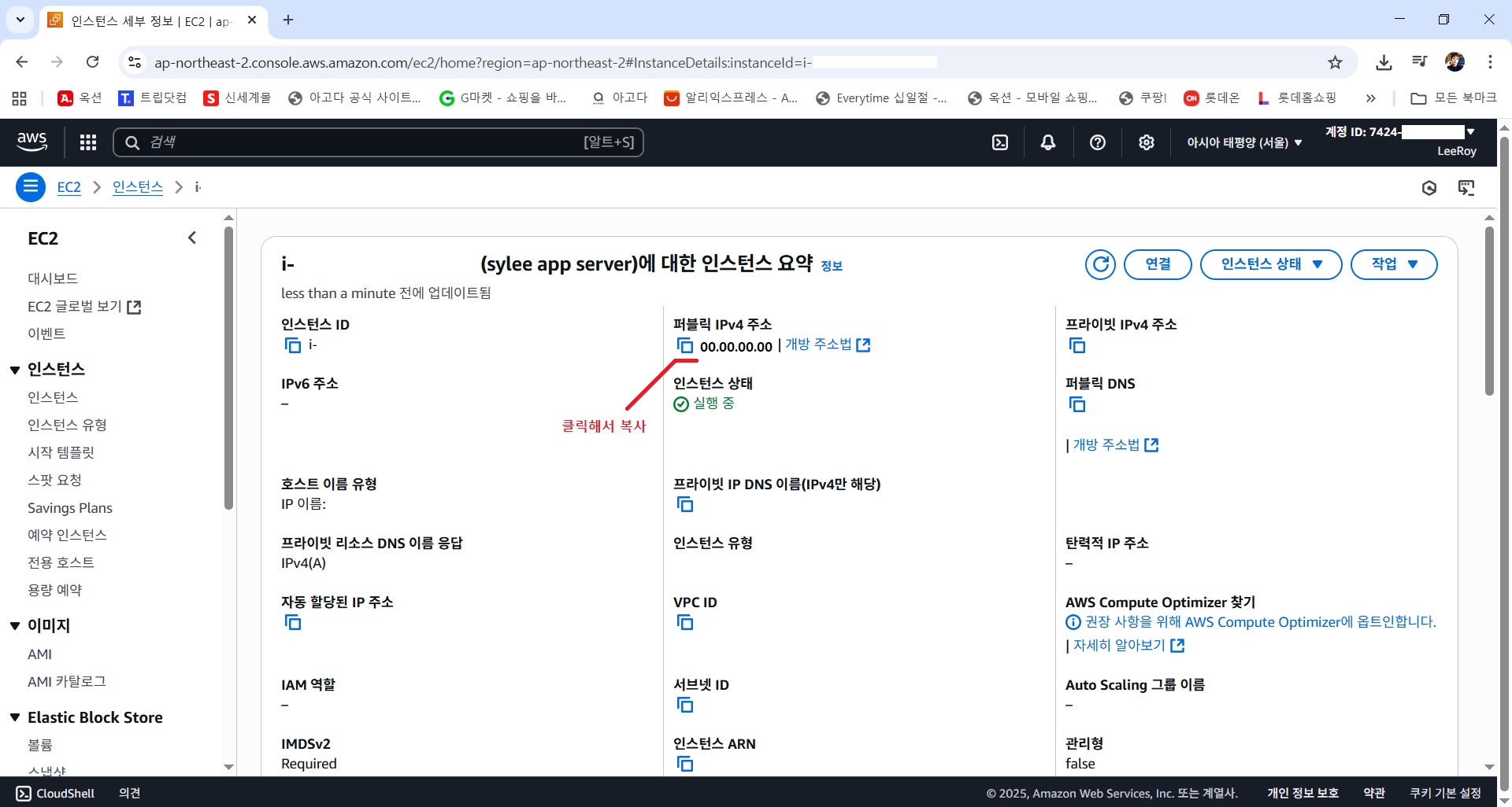 1) AWS EC2 퍼블릭 IPv4 주소 복사