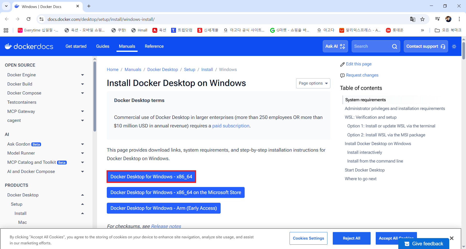 1) https://docs.docker.com/desktop/setup/install/windows-install/ 접속