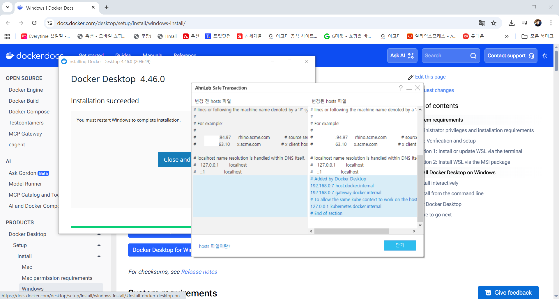 4) 설치 단계에서 hosts 파일 변경 알림 있을 수 있음 → 변경 허용 후 진행