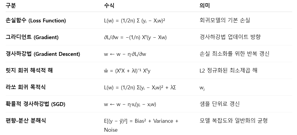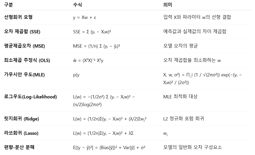2) 회귀·추정 기본 수식