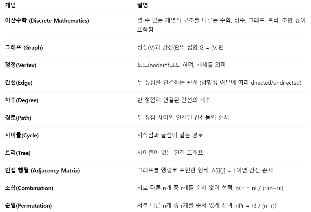 | 조합(Combinatorics) | 가능한 경우의 수 | 모델 탐색, 최적화 문제 |