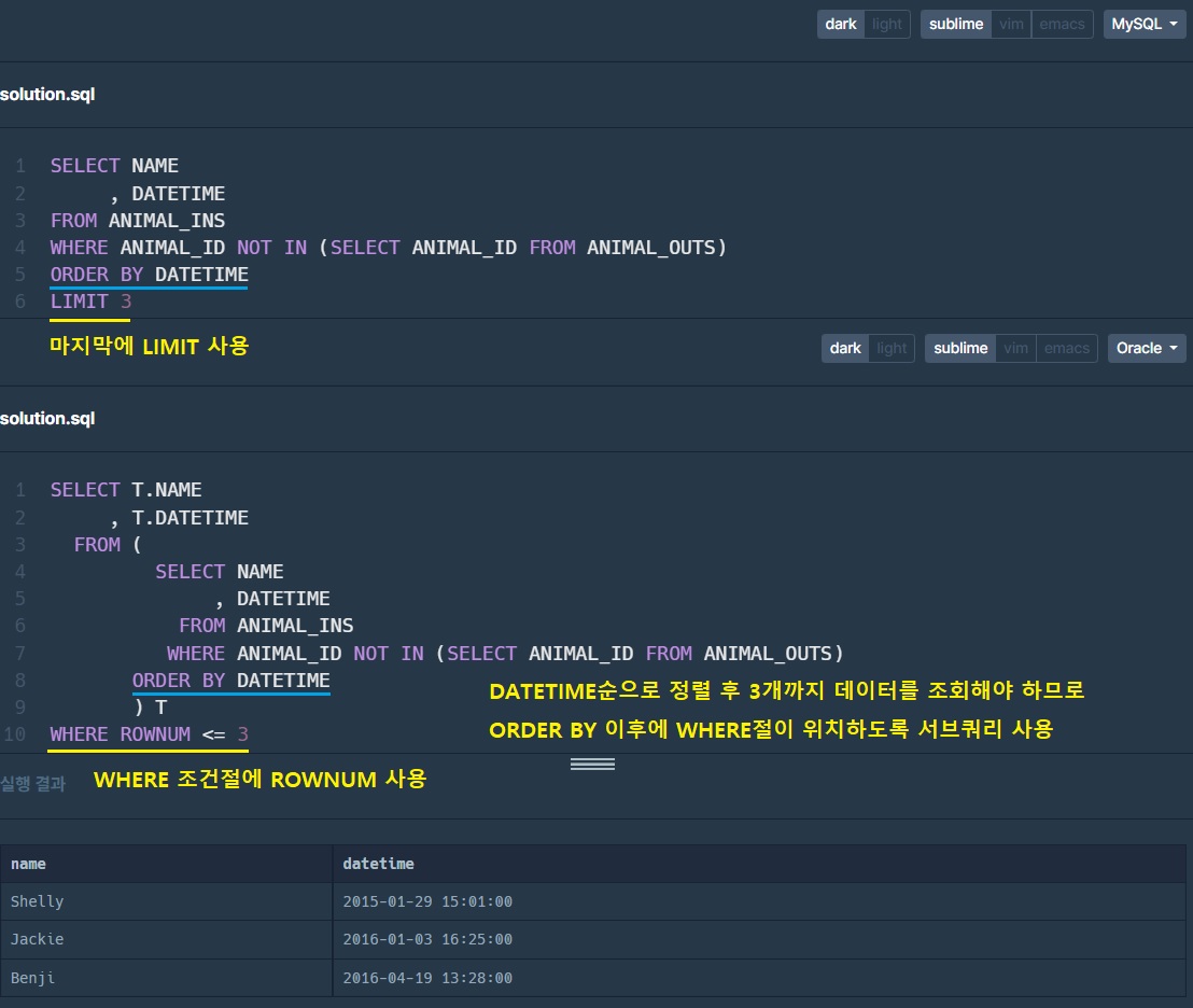 WHERE ROWNUM <= 3