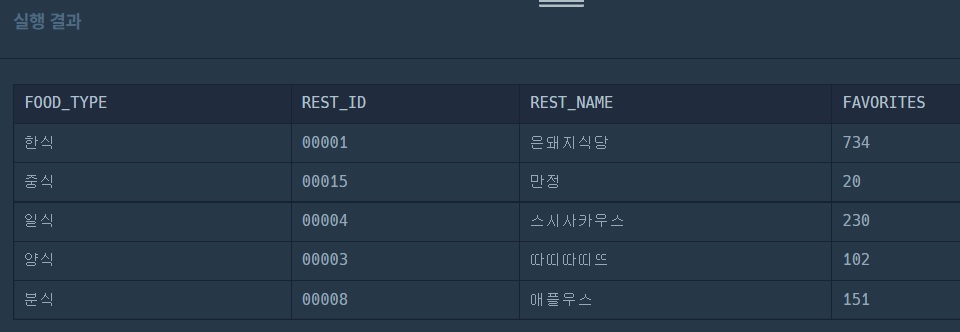 [SQL] 프로그래머스 [Level-3] 즐겨찾기가 가장 많은 식당 정보 출력하기