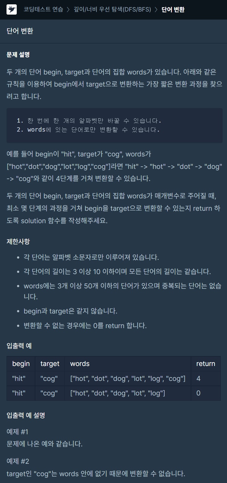 [Java] 프로그래머스 [Level-3] 단어 변환